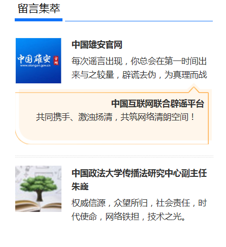 重視網(wǎng)民留言、提升服務(wù)水平,是聯(lián)合辟謠的一項重要工作。此次改版,中國互聯(lián)網(wǎng)聯(lián)合辟謠平臺更加注重網(wǎng)民留言,PC首頁(yè)專(zhuān)門(mén)開(kāi)設留言集萃,分享網(wǎng)民留言信息。