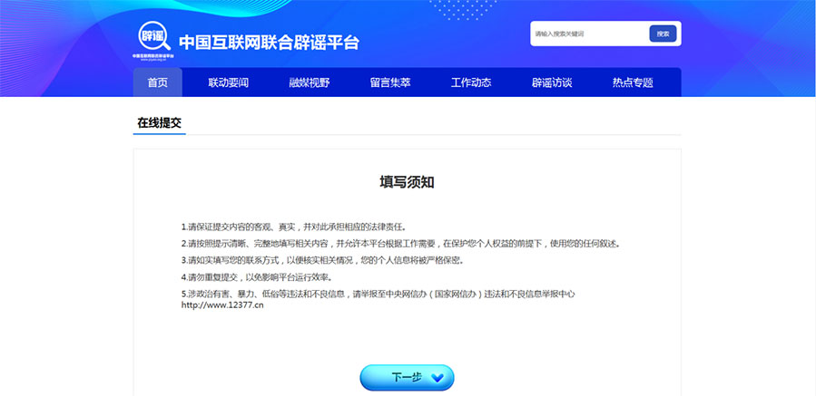 新版平臺秉持“聯(lián)合共治”理念,將“以我為主”和“舉報查證”相結合,探索網(wǎng)絡(luò )謠言治理新模式,實(shí)現集舉報、查證、辟謠功能于一體的綜合信息服務(wù)平臺模式。