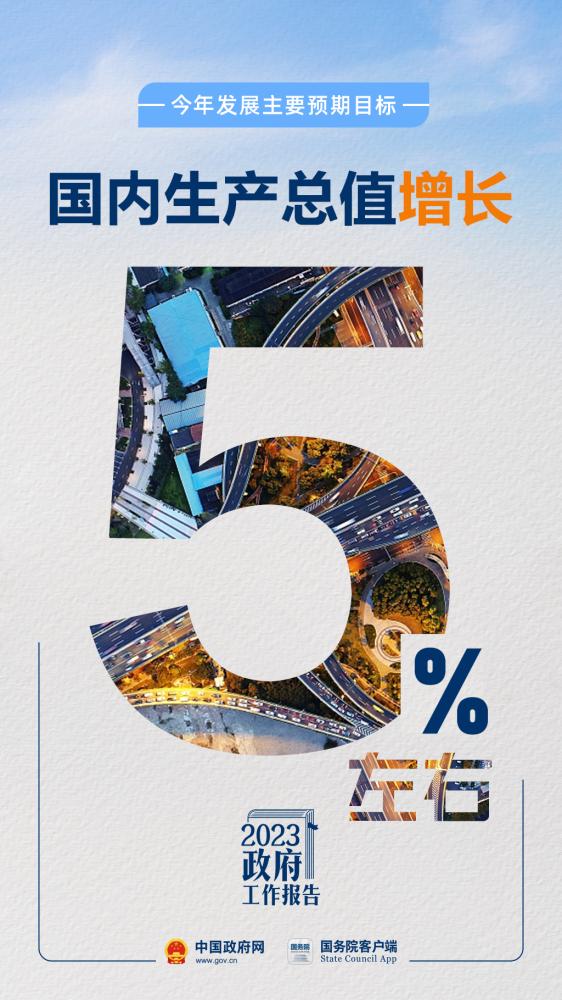 【時(shí)政要聞】GDP增長(cháng)5%左右、CPI漲幅3%左右……今年發(fā)展主要預期目標有這些! 來(lái)源:中國政府網(wǎng) 發(fā)布時(shí)間:2023-03-05 12:02:00 瀏覽次數: 次 【字體:小 大】 GDP增長(cháng)5%左右、CPI漲幅3%左右……今年發(fā)展主要預期目標有這些! 分享到: 【打印正文】