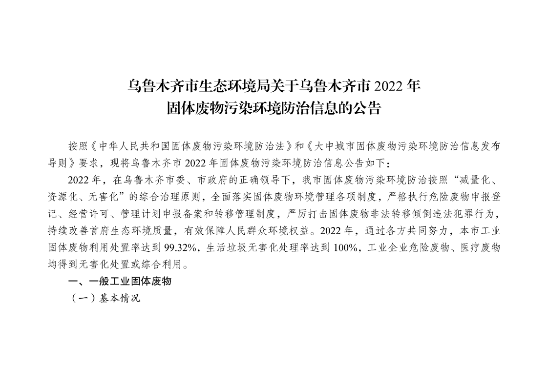 烏魯木齊市生態(tài)環(huán)境局關(guān)于烏魯木齊市2022年固體廢物污染環(huán)境防治信息的公告 來(lái)源: 發(fā)布時(shí)間:2023-06-05 瀏覽次數: 次 【字體:小 大】 【打印正文】 分享到: 【字體:小 大】