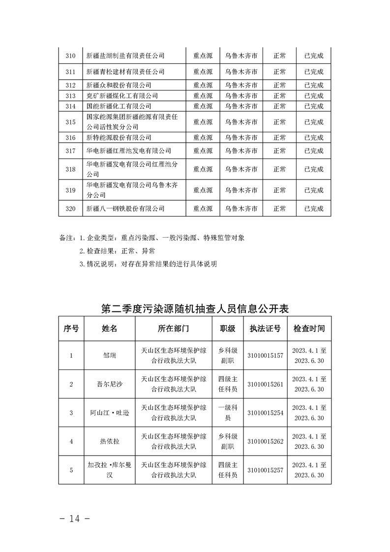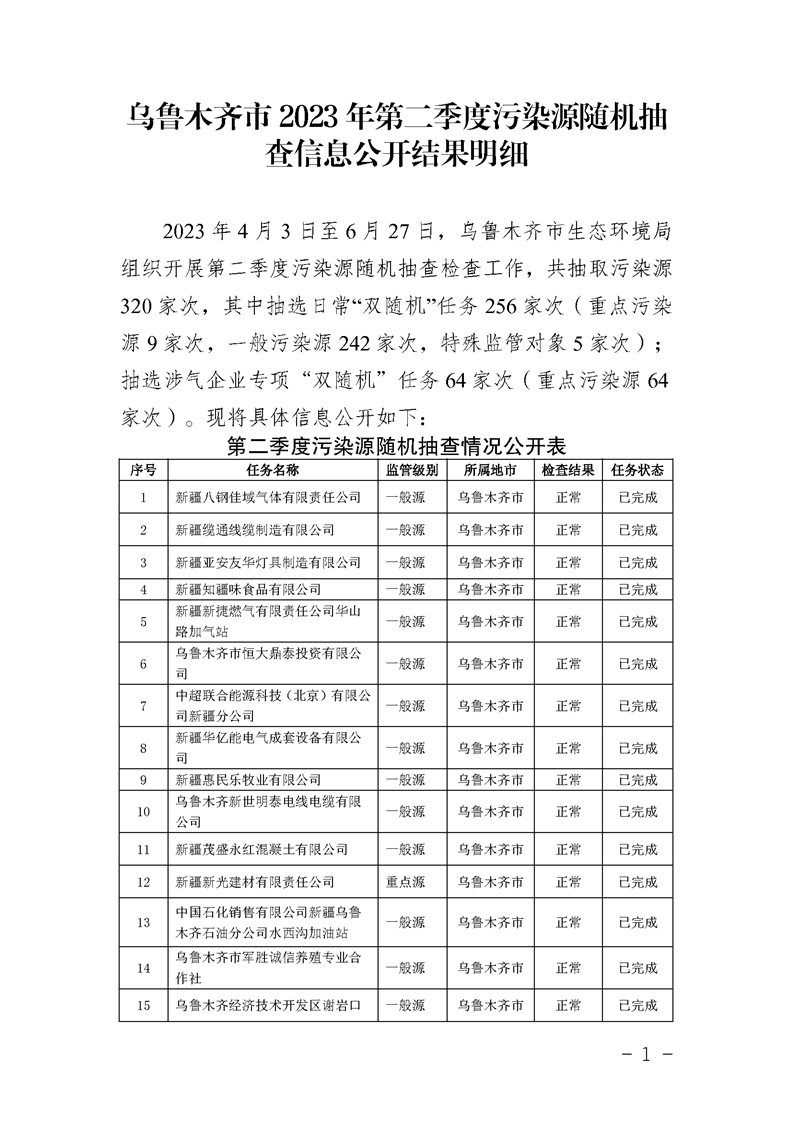 烏魯木齊市2023年第二季度污染源隨機抽查信息公開(kāi)結果明細 來(lái)源: 發(fā)布時(shí)間:2023-06-29 瀏覽次數: 次 【字體:小 大】 【打印正文】 分享到: 【字體:小 大】